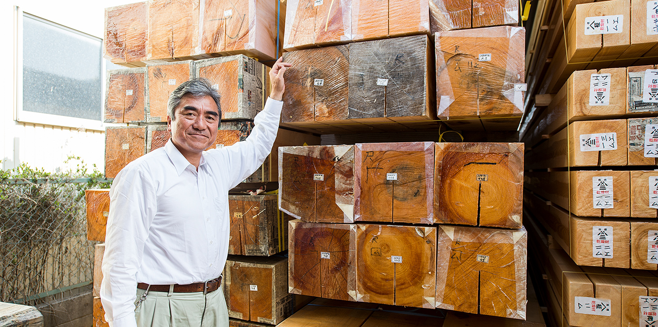 建築に詳しいお客さんが、「自然乾燥が一番いいのは分かっていても効率優先の時代、理想論で片づけられてしまっている。これを実行しているのにびっくりしました。しかもこれだけ膨大な本数がある。ほんとにすごい。」